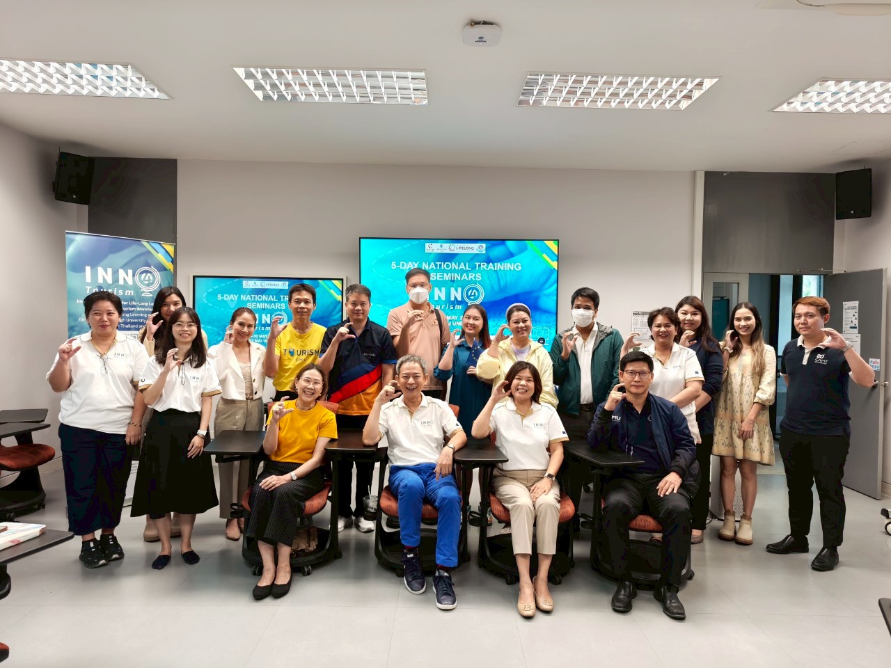 The CMU 5-Day National Training Seminar was held from 26-30 May 2025 at Room ILC-C301, 3rd Floor, Building C, Innovation and Learning Center, Chiang Mai University (CMU). There were more 20 participants from relevant faculties within the university joined the training. This seminar was organized through the collaboration of the College of Arts, Media, and Technology, Chiang Mai University, the Department of Tourism, Faculty of Humanities, and the CMU School of Lifelong Education. The objective of this seminar was to transfer knowledge on curriculum development for sustainable tourism, as part of the Training of Trainers (ToT) Programme under the INNO4Tourism Project. It aimed to enable HEIs staff who attended the training to effectively improve the teaching and learning medthedology, apply, and transfer the acquired knowledge within their own curriculum development in related fields. The training seminar covered a broad range of topics, including sustainable tourism skills, entrepreneurship, tourism management, digital skills, green skills, and soft skills, which are essential for developing the workforce of the modern era.
